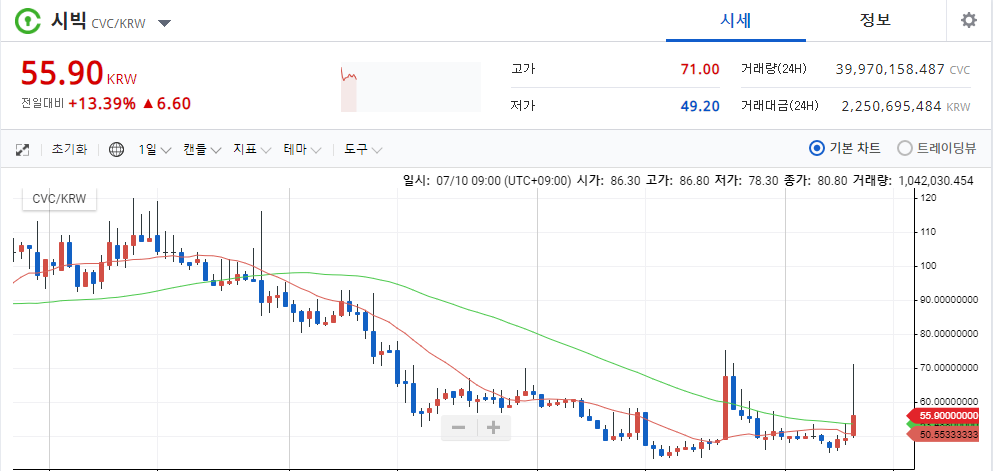 시빅 코인 전망과 관련하여 시빅 코인 가격의 최근 동향도 100원 이상으로 가격대가