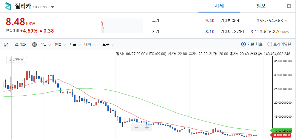 질리카 코인이 회복할 기미가 아예 없는 것은 아닙니다. 오히려 가격대가 완전히 내려