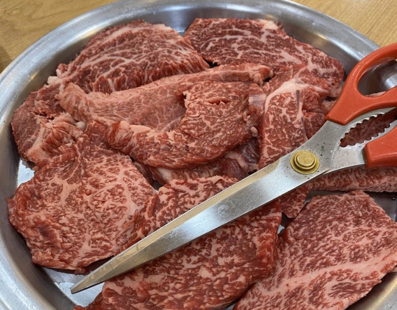 자 마블링이 보이시나요? 드디어 나왔습니다. 유래회관의 대표매뉴 한우 생등심.