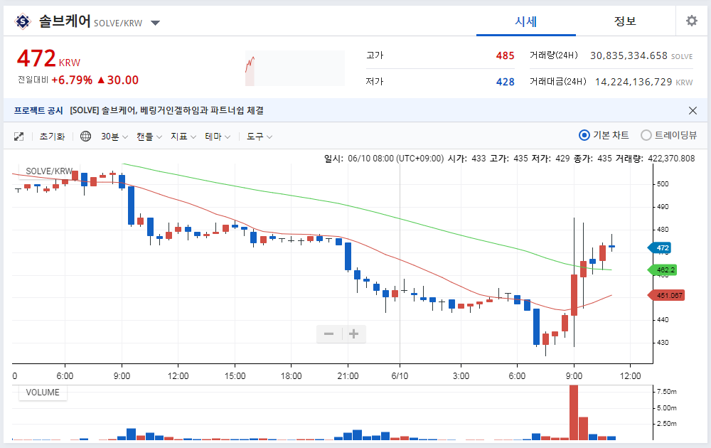 솔브케어가 업비트에서 큰 상승을 기록하고 있습니다.