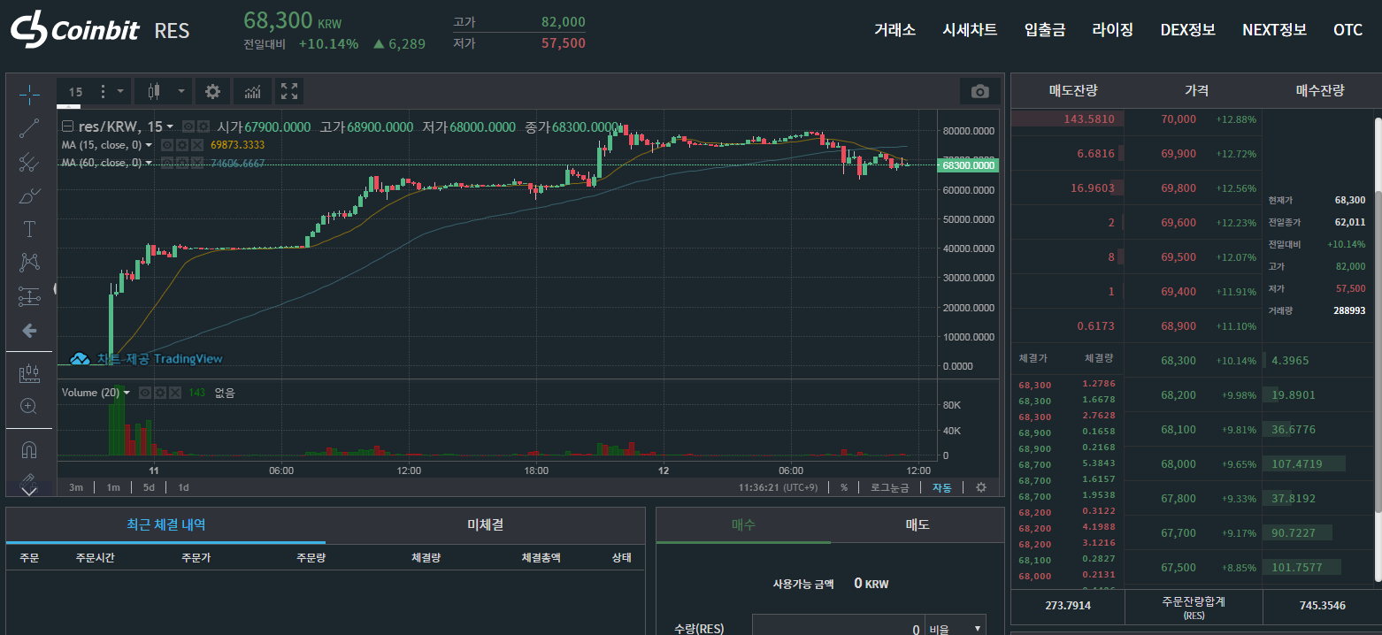 레지스탕스 가 코인빗 거래소에서 어디까지 상승한지 확인하셨나요? 6만원이 고점일것이라는 예측을 뒤로한채