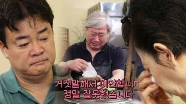 이를 보던 남자 사장님은 눈물을 보이면 제작진과 백종원에게 진심어린 사과를 했고