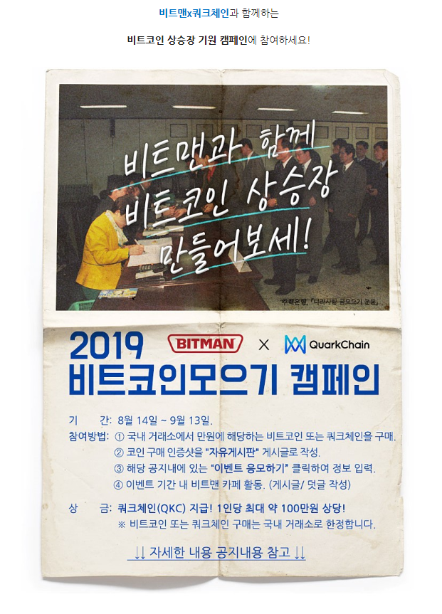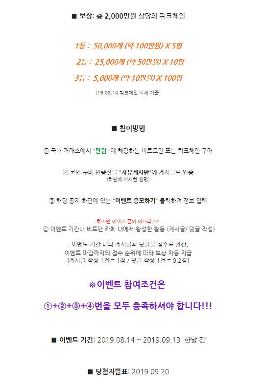쿼크체인과 함께 비트코인 상승장 기원하는 의미로 진행하는 이번 이벤트 내용이 좋아서 공유하려고 합니다.
