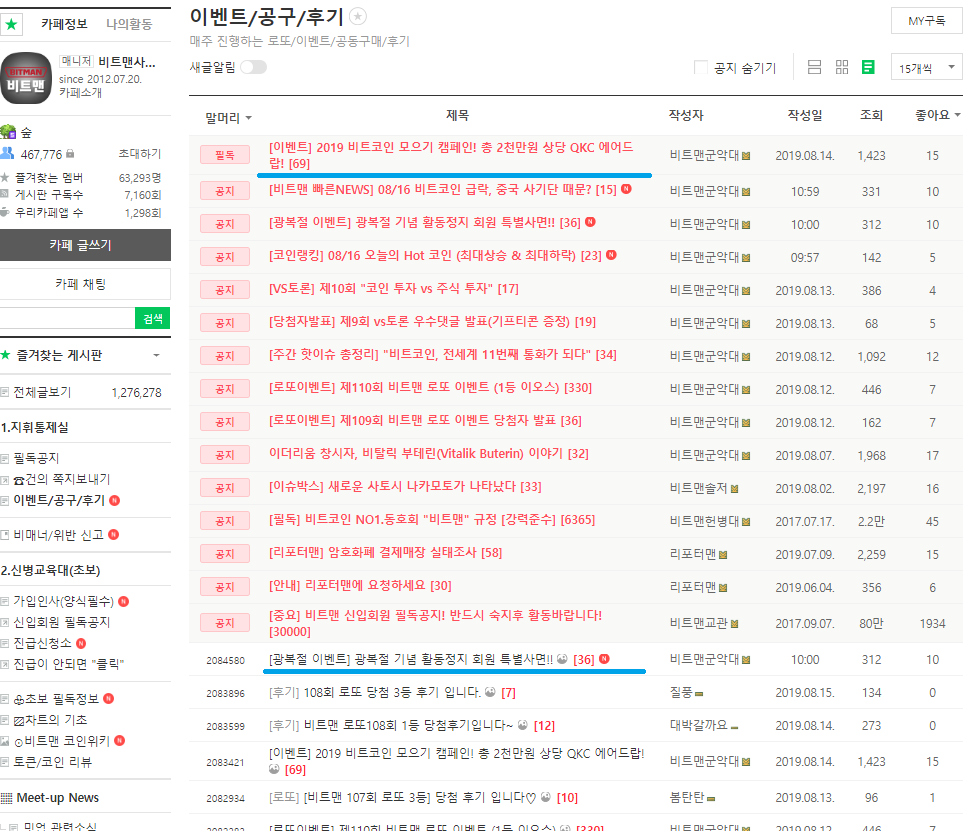 이미 비트맨의 경우 다양한 이벤트 개최로 카페 회원들 상대로 꾸준히 에어드랍 진행을 하곤 했는데