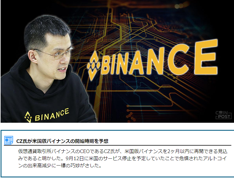 바이낸스의 CEO 창펑자오는 최근 인터뷰에서 바이낸스 US가 2개월내로 출시될 것이라고 말했습니다.